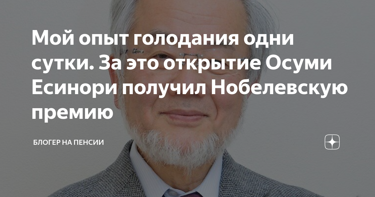 Мой опыт голодания одни сутки. За это открытие Осуми Есинори получил Нобелевскую премию Добрый день, читатели блога "Блогер на пенсии"! Я хочу поделиться с Вами интересным открытием. Хотя, мне кажется, для православных людей ограничение себя в пище - это давно не открытие, а естественный процесс. Что именуется постом. Я же сейчас хочу поговорить о научном подтверждении того, что голодать (чиститься) полезно. Это открытие японского биолога Осуми Есинори. О нем более подробно Вы