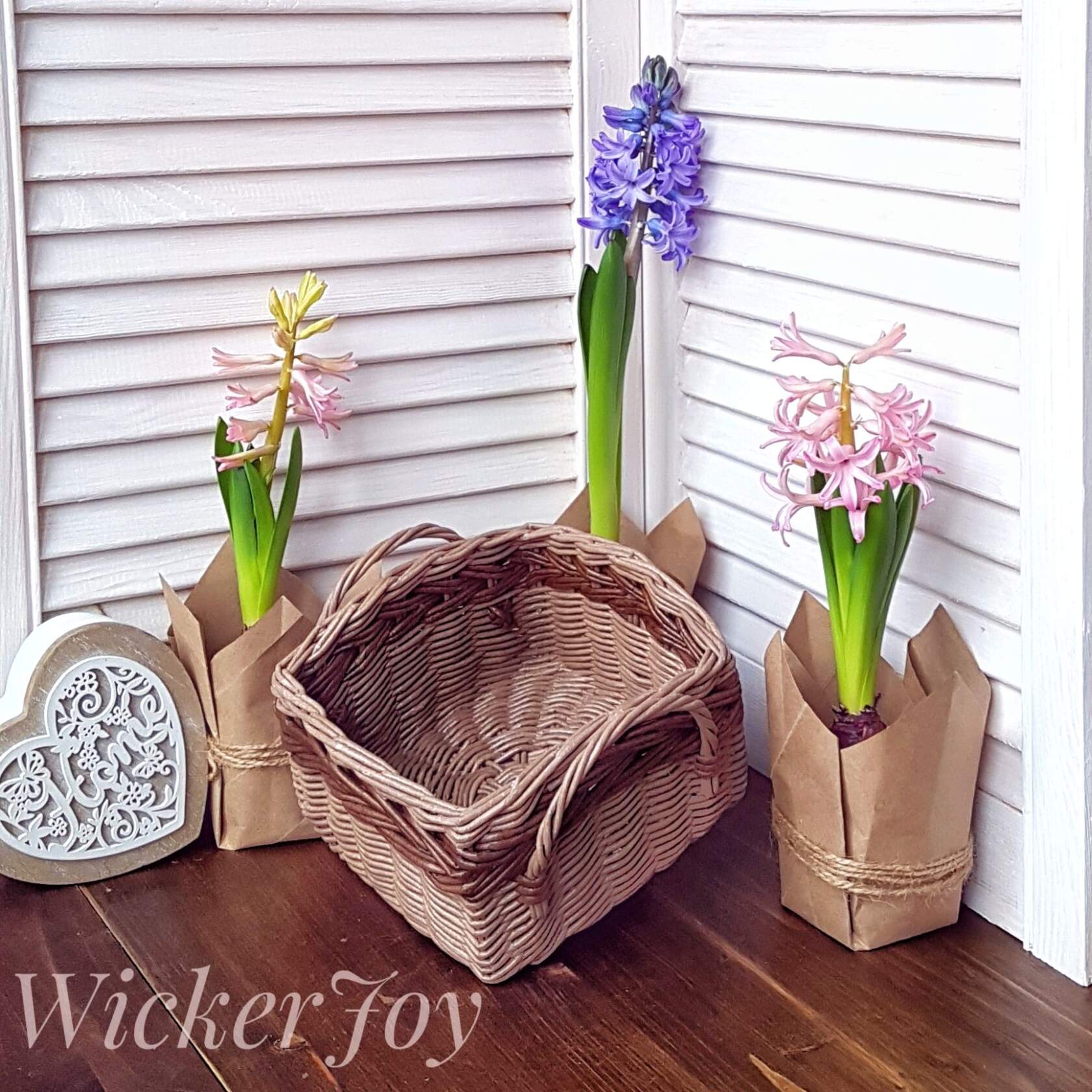 ВЕСНА ИДЁТ! Корзиночка-органайзер. Оригинальная упаковка подарка для любой женщины,которая любит уют, комфорт и порядок. Ведь после того как подарок будет вручён, цветы отцветут, а конфеты съедены, корзиночка будет служить её хозяйке долгое время. На кухне в ней можно хранить салфетки или баночки со специями, в ванной -лаки, пенки, муссы, в гостинной использовать как кашпо, а можно поставить в коридоре и складывать в неё ключи. . . Размер 16х16 см, высота 11 см., Уход-с...