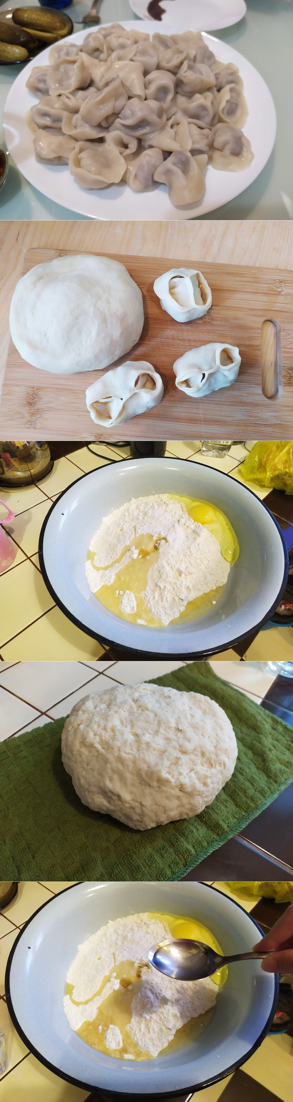 В тесто пельменное надо добавлять уксус и масло: Легко раскатывается, долго не сохнет при лепке, хорошо лепится. Также не разваривается и очень вкусное! Ингредиенты: Мука 700г Яйцо 1 шт Соль на глаз Подсолнечное масло 2 ст.л. Уксус 9% - 1ст.л. Кипяток (я не смотрела количество,к сожалению, наливала сразу с чайника).