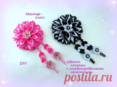 Цветок канзаши с комбинированными лепестками + школьный вариант. Канзаши /МК/Hand мade/DIY/ Kanzashi
