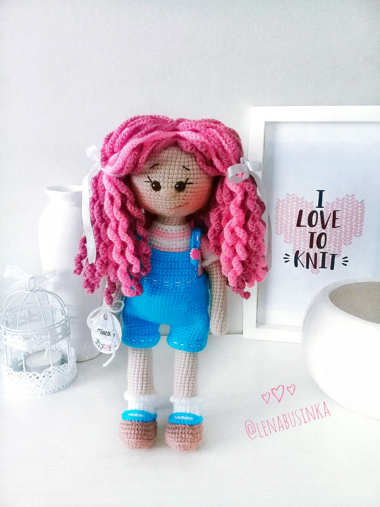 PDF Кудряшка Сью крючком. FREE crochet pattern; Аmigurumi doll patterns. Амигуруми схемы и описания на русском. Вязаные игрушки и поделки своими руками #amimore - большая кукла, куколка в комбинезоне.