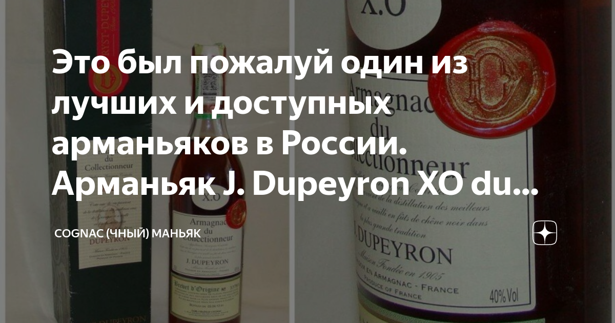 Это был пожалуй один из лучших и доступных арманьяков в России. Арманьяк J. Dupeyron XO du Collectionneur Данная статья содержит сведения об алкоголе. Предупреждаю, чрезмерное употребление алкоголя вредит вашему здоровью