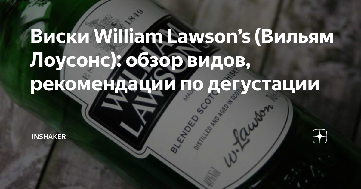 Виски William Lawson’s (Вильям Лоусонс): обзор видов, рекомендации по дегустации Купажированный виски William Lawsons занимает прочные позиции на рынке крепкого алкоголя. У каждого напитка из линейки бренда целая армия поклонников. А все благодаря отличному соотношению цены и качества. Скотч отличается мягким вкусом без всякого намека на «дымность» и богатым ароматом.