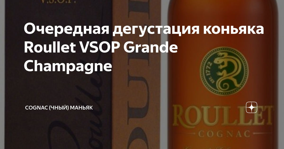 Очередная дегустация коньяка Roullet VSOP Grande Champagne Данная статья содержит сведения об алкоголе. Предупреждаю, чрезмерное употребление алкоголя вредит вашему здоровью Мои читатели, всем привет! Продолжаем знакомиться с французскими коньяками категории VSOP. Очередная дегустация посвящена Roullet VSOP Grande Chapagne. Очередной обзор от моего друга Макара (текст и фото автора, ссылка на оригинал в конце обзора). Этот прекрасный, душевный и питкий