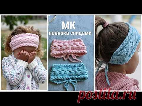 Мастер-класс красивая повязка спицами на завязках с узором косичка. Красивая детская повязка спицами