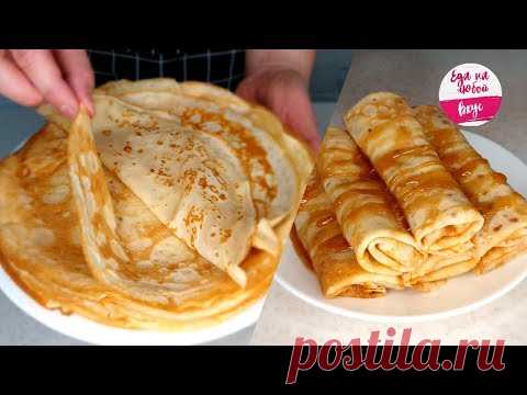 Блины 3 стакана! Самые ТОНКИЕ на Масленицу (+ Необычная начинка). Рецепт не только на молоке