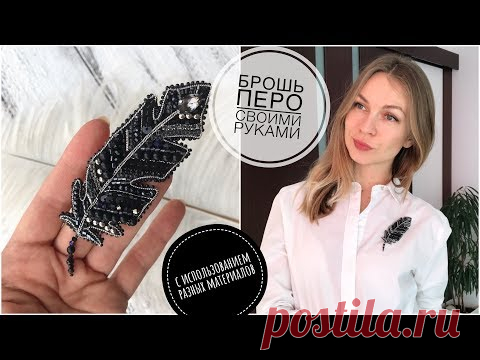 Брошь Перо своими руками | бисер, стеклярус, стразовая цепь, пайетки | plume brooch DIY