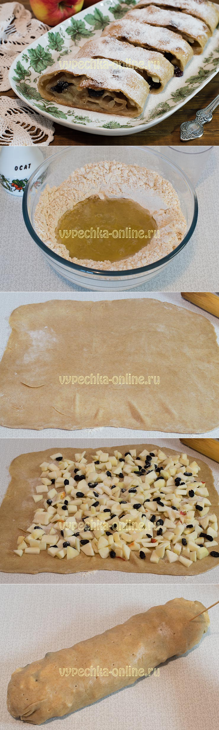 ✔️Постный штрудель с яблоками и изюмом с цельнозерновой мукой в духовке – рецепт с фото
