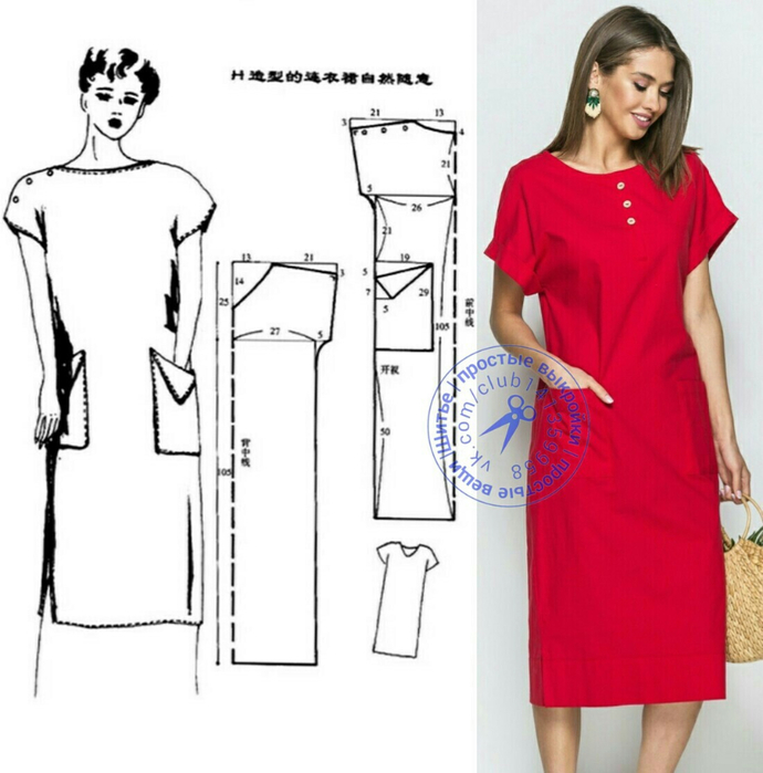 Платье прямого силуэта с накладными карманами. Шить легко и просто