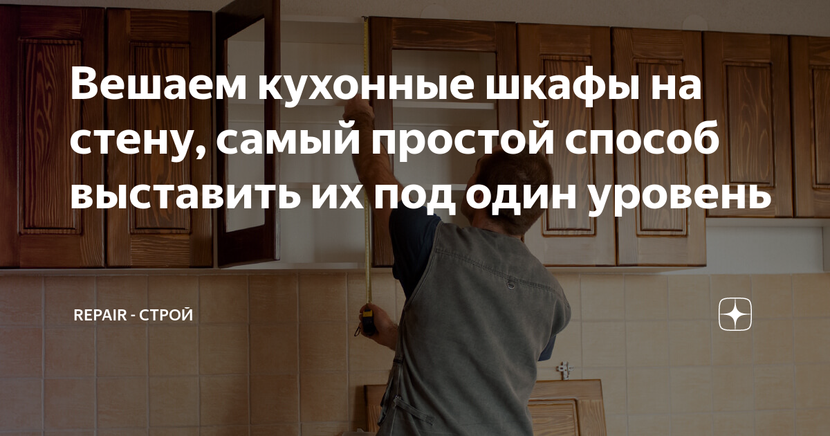 Вешаем кухонные шкафы на стену, самый простой способ выставить их под один уровень Это одна из наиболее важных проблем на кухне, на первый взгляд если подумать, что в этом сложного скажете вы. Отмерил, просверлил и повесил, а потом начинаете сталкиваться с мелкими проблемами, такими как, сложно дотянуться до верхней полки или вентиляция мешает, либо вообще не красиво, и не так все висит, можно было бы и по лучше прикрепить. Во избежание таких перепалок, мы вам дадим простой