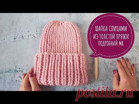 САМАЯ МОДНАЯ ШАПКА. ШАПКА ИЗ ТОЛСТОЙ ПРЯЖИ РЕЗИНКОЙ 1Х1. ПОДРОБНЫЙ МК