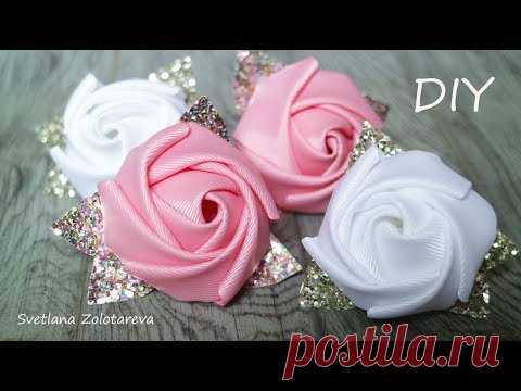 Простые розы из ленты Резинки для волос Брошь Заколка Цветы из лент