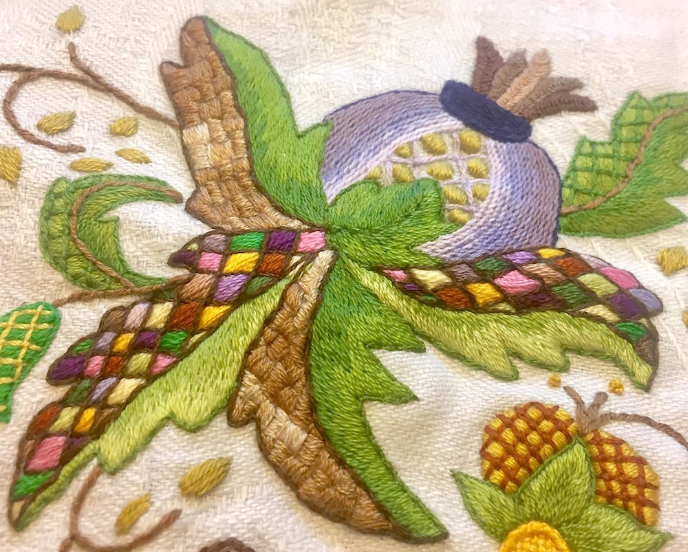 Якобинская вышивка: особенности, отличие от крюила и виды швов Даже если со словосочетанием “якобинская вышивка” вы раньше не встречались, особые восхитительные узоры и рисунки — витиеватые растения, экзотические птицы и животные, сказочные цветы — наверняка попадались вам на глаза. Сложные, разнообразные, яркие — эти вышитые работы едва ли можно не заметить.