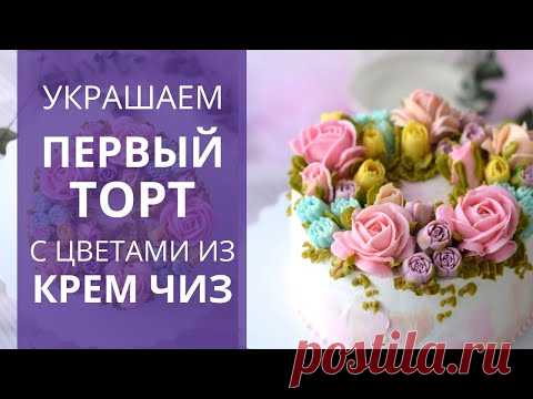 ПЕРВЫЙ торт с цветами из КРЕМ-ЧИЗ! Заварной крем чиз - супер крем для цветов.