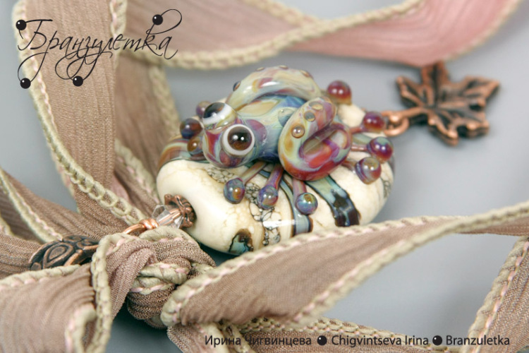 (6) Gallery.ru / Кулон лягушка Радость. Авторская бусина lampwork - Украшения в наличии - branzuletka