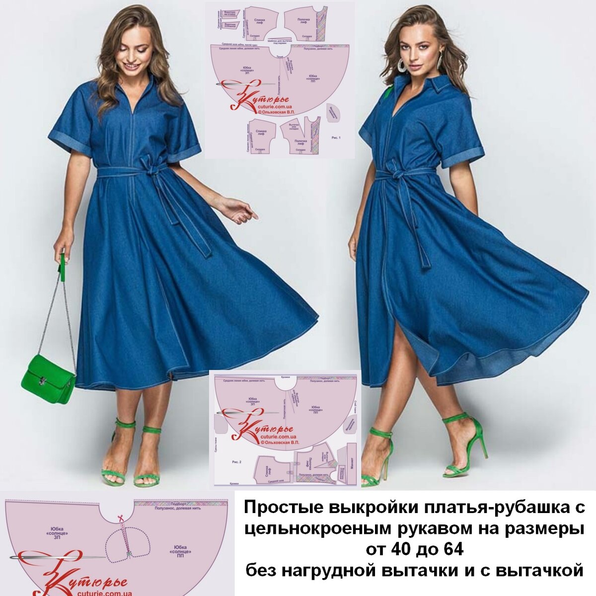 Простые выкройки красивого платья-рубашка с цельнокроеным рукавом | Шьем с Верой Ольховской | Яндекс Дзен