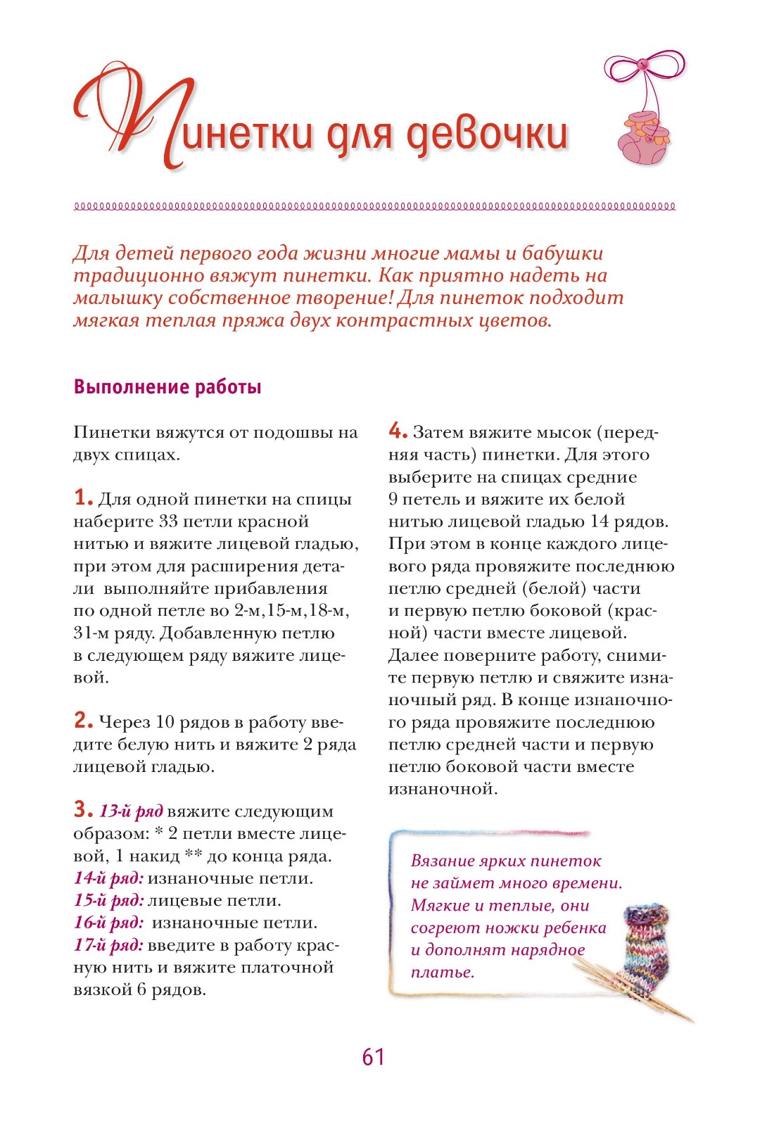 пинетки спицами для девочки
