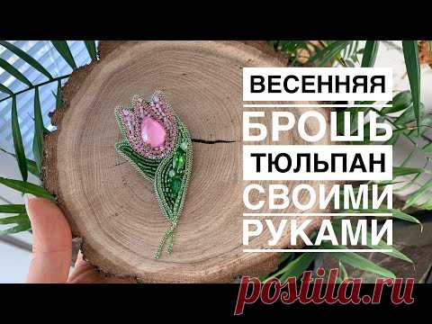 Весенняя брошь тюльпан своими руками | брошь из бисера