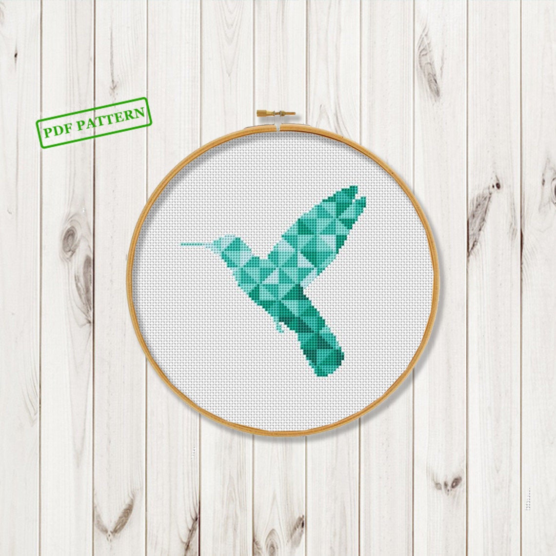 Geometric cross stitch hummingbird pattern modern cross stitch | Etsy