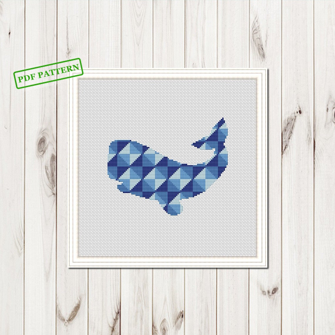 Geometric Whale cross stitch modern pattern Sea Animals blue | Etsy
