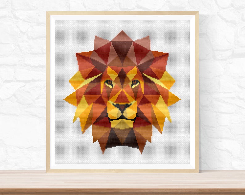 Lion Geometric Cross Stitch Pattern / Modern Counted Cross | Etsy