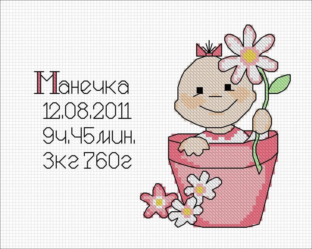 Метрика для новорожденных вышивка крестом схемы: рождение ребенка с датой, девочки.