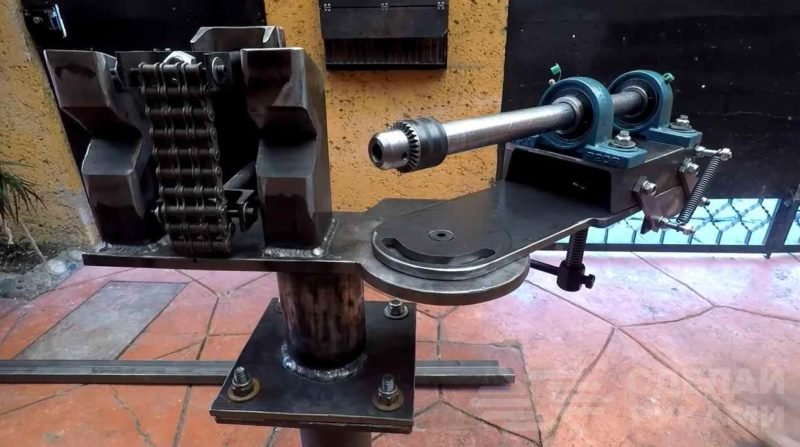 Мощный станок для вырезания седловин в трубах Для изготовления данного станка потребуются куски толстого листового металла, швеллер, профильная труба, куски металлического уголка, втулки из