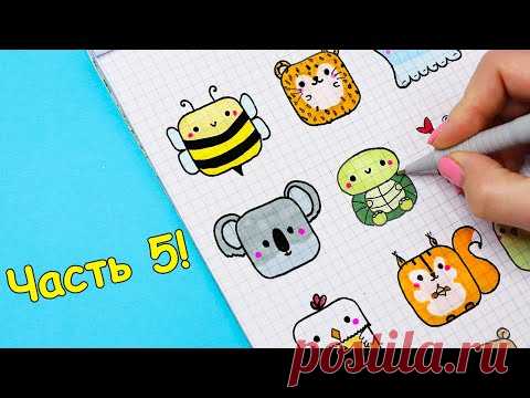 10 Квадратных животных ПО КЛЕТОЧКАМ! Часть 5. Простые рисунки для детей