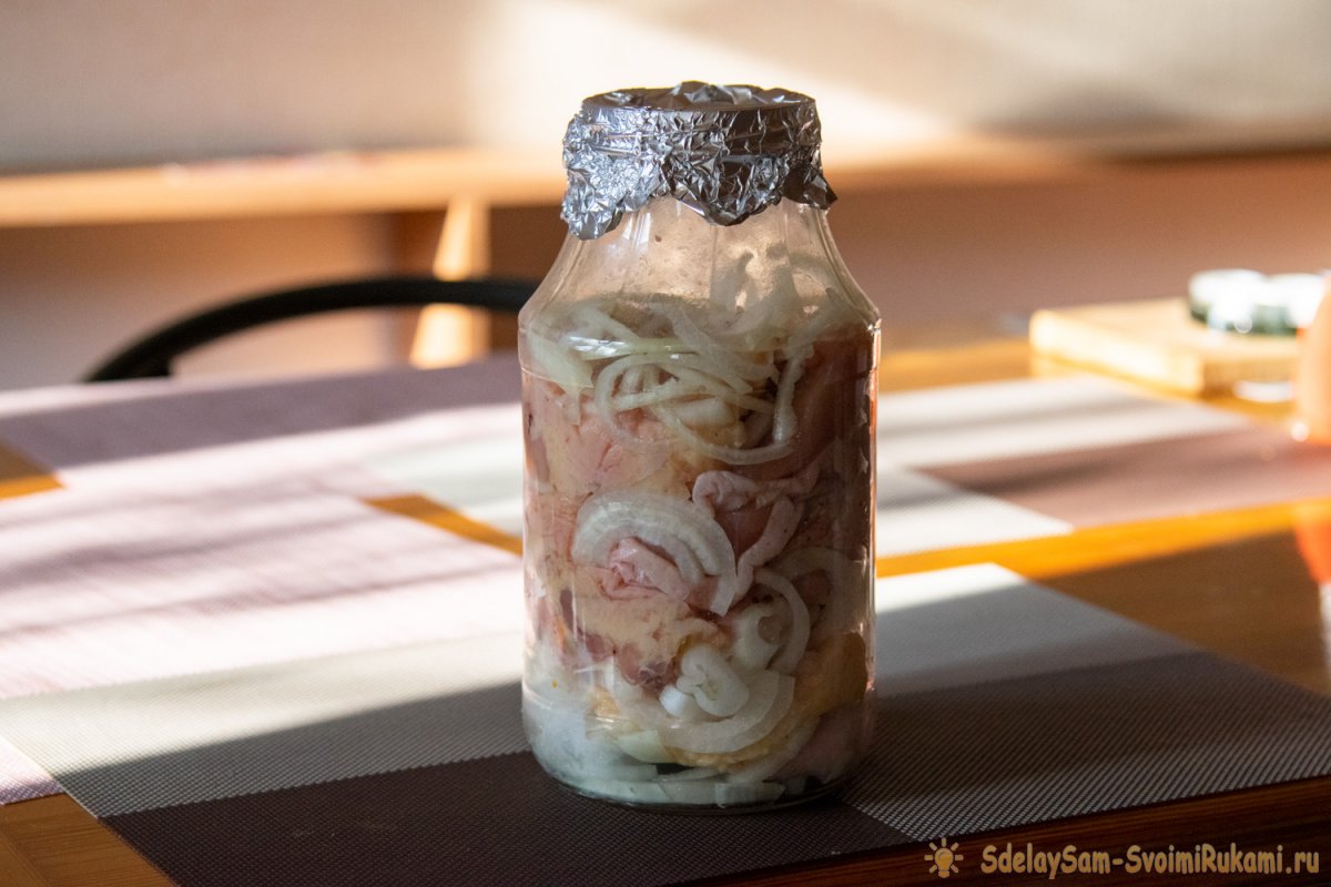 Курица в банке - самый простой и невероятно вкусный способ приготовления Что может быть проще? Наверное, ничего. Вкусно? Язык проглотить можно. Не нужно сомневаться, вам нужно просто повторить этот рецепт. Ничего похожего с рукавом для запекания данный способ не имеет.Ингредиенты:- курица – 1 шт.,- лук – 1-2 крупные луковицы,- соль из расчета 1 чайная ложка без горки на