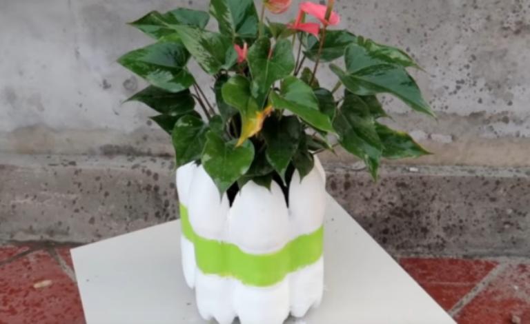 Мужчина разрезал бутылки и залил их цементом. Получилась чудесная вещь для сада