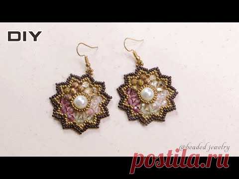 Быстро и легко сделать серьги из бисера с бисером семян и круглыми бусинамиDIY цветок серьги. Как сделать серьги из бисера