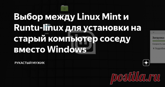 Выбор между Linux Mint и Runtu-linux для установки на старый компьютер соседу вместо Windows Тот уникальный случай, когда человеку всё равно, какую систему не знать, а компьютер нужен для просмотра фильмов через Интернет и погоды назавтра: сосед - человек в возрасте и опыт работы на компьютере равен нулю