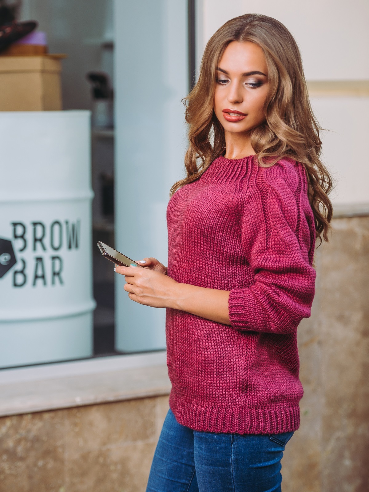 Очень красивый пуловер с узором из кос на рукавах