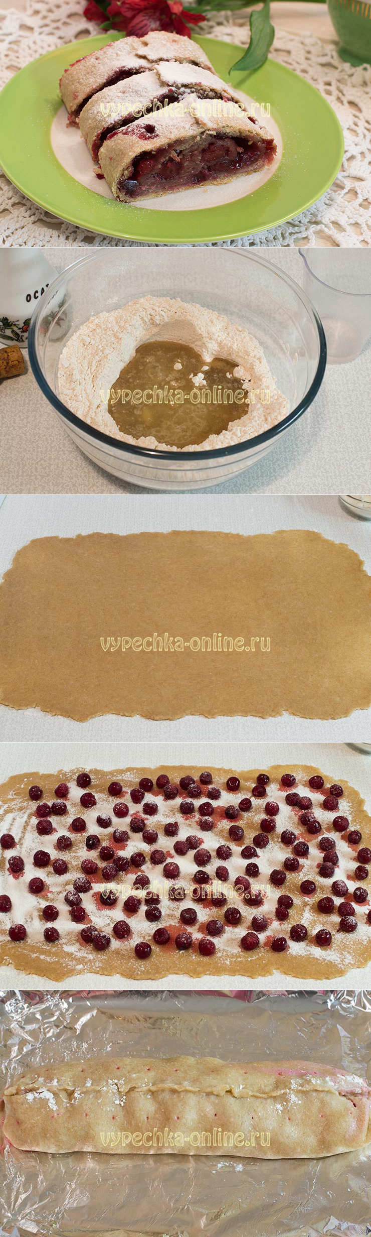 ✔️Постный штрудель с вишней с цельнозерновой мукой – рецепт с фото