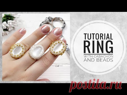 #МК - Кольцо с применением кабашона и бисера | #Tutorial - Ring with cabochon and beads