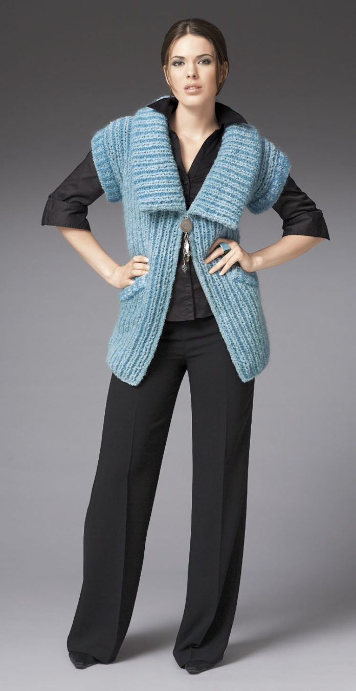 Удлиненная безрукавка спицами с отложным воротником - Портал рукоделия и моды