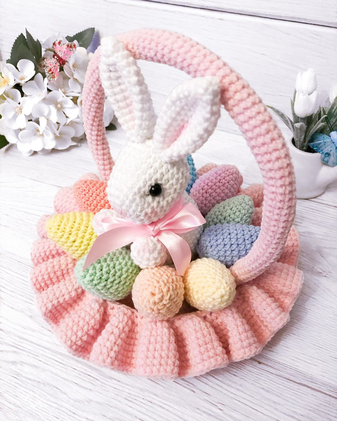 PDF Мастер-класс по вязанию пасхального декора кролика с крашеными яйцами крючком #схемыамигуруми #амигуруми #вязаныеигрушки #вязаныйзаяц #вязаноеяйцо #amigurumipattern #freeamigurumipattern #amigurumi #crochetpattern #crocheteaster