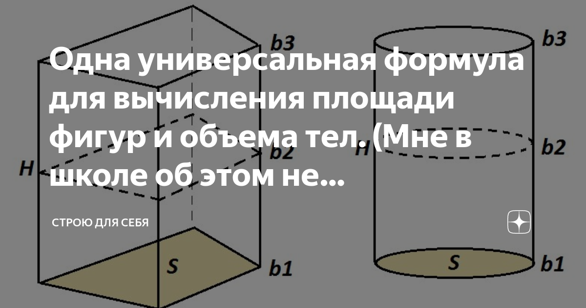 Одна универсальная формула для вычисления площади фигур и объема тел. (Мне в школе об этом не рассказывали) Не припомню, чтобы мне кто-либо в школе из учителей показал одну общую формулу для расчета объема фигур и площади тел. Да и сейчас, просматривая домашнее задание детей - учителя заставляют учить формулы всех фигур наизусть...