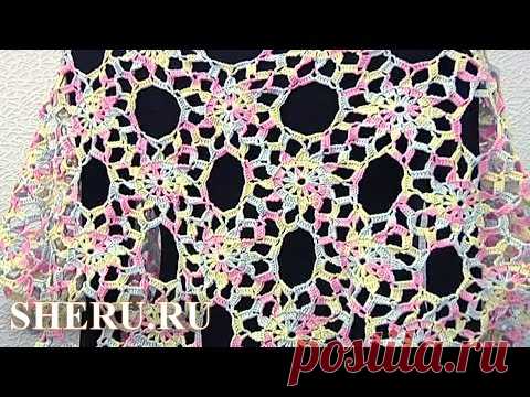 Ажурная косынка из мотивов Урок 13 часть 2 из 3 Häkel