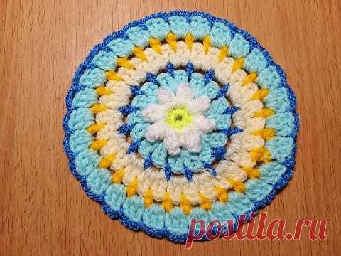 Красивый круглый мотив с цветком. Крючок для начинающих.
