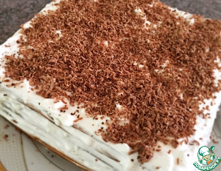 - Потереть шоколад и посыпать сверху. Дать пропитаться 2-3 часа (у меня он обычно ночь стоит в холодильнике).