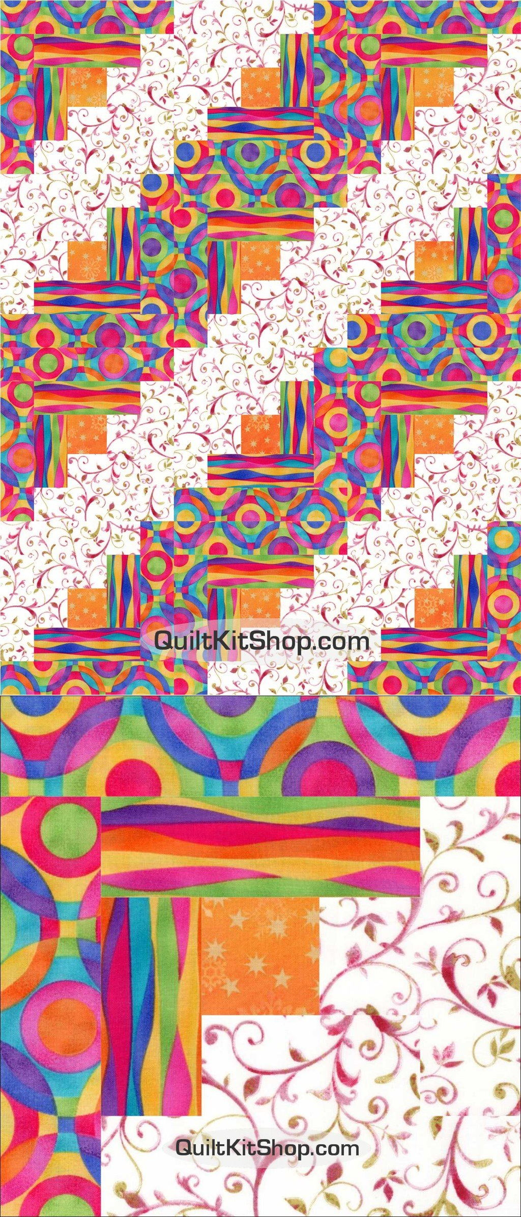 Geo Brights Log Cabin Pre-Cut 12 Block Quilt Kit | Quilt Kit Shop