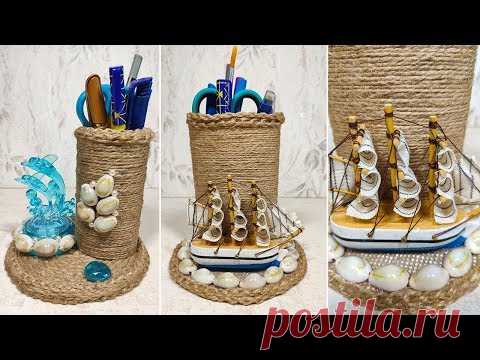 2 идеи поделок из джута. Органайзер для карандашей и ручек своими руками.