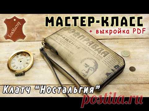 Кожаный клатч "Ностальгия". Как сделать клатч из кожи + выкройка PDF