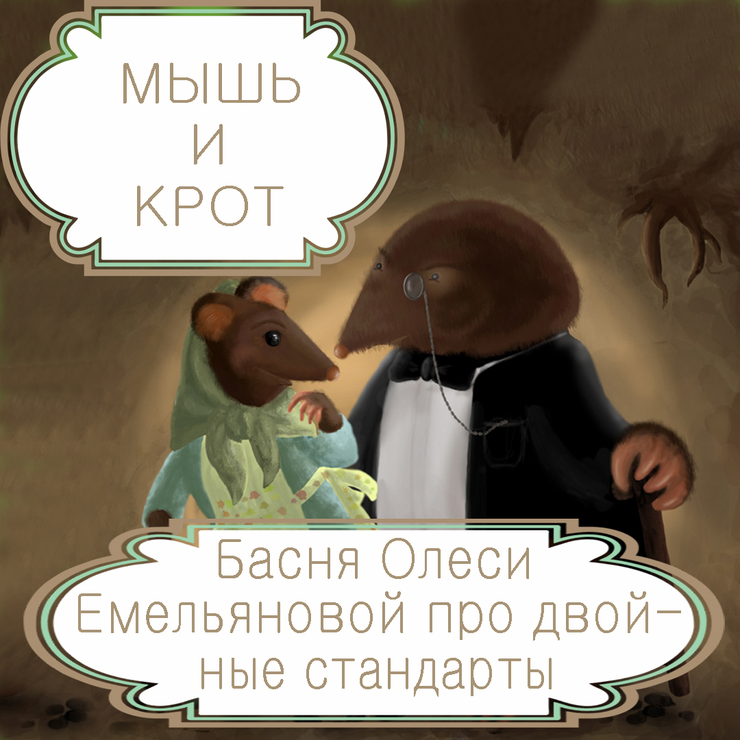Басня в стихах Олеси Емельяновой «Мышь и крот» про свекровь и невестку, тёщу и зятя, счастье в браке и двойные стандарты. Оценивая ситуацию, эгоистичные люди даже не пытаются быть объективными, а исходят исключительно из соображений собственной выгоды и выгоды своей родни. Именно такова мышь из этой поучительной современной басни в стихах, которая ставила интересы своих детей гораздо выше, чем интересы зятя и невестки.