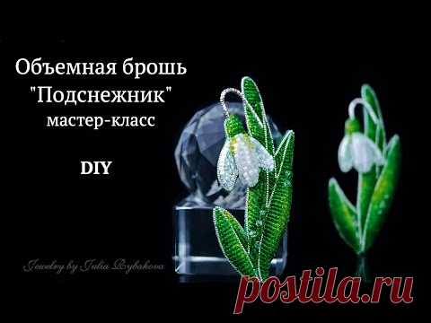 Объемная брошь из бисера мастер-класс. Подснежники из бисера. Handmade brooch from beads. DIY