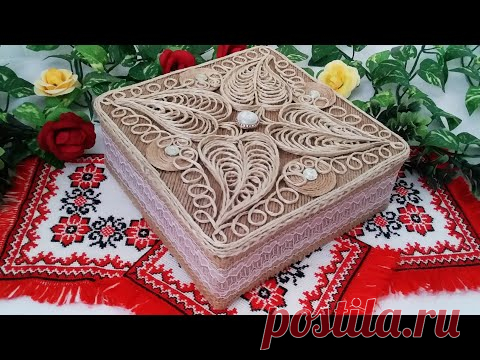 Как сделать шкатулку из картона,в технике ДЖУТОВАЯ ФИЛИГРАНЬ.