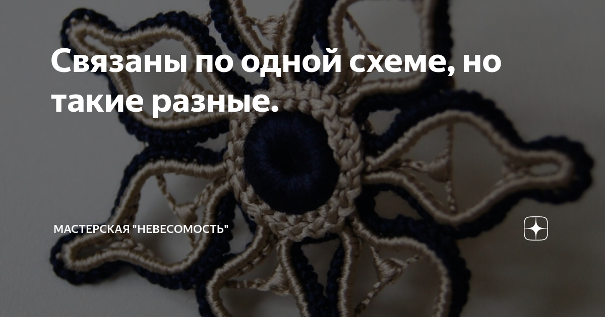 Связаны по одной схеме, но такие разные. Несколько лет назад придумала интересный элемент для ирландского кружева. Необычный цветок, который стал до такой степени универсальным , что использую его в разных композициях. И что особенно приятно, он приглянулся не только мне, но и многим мастерам ) Встречайте! Вот он - мой красавец! Цветок мастерской "Невесомость" Он отлично вписался в кружевную композицию.
