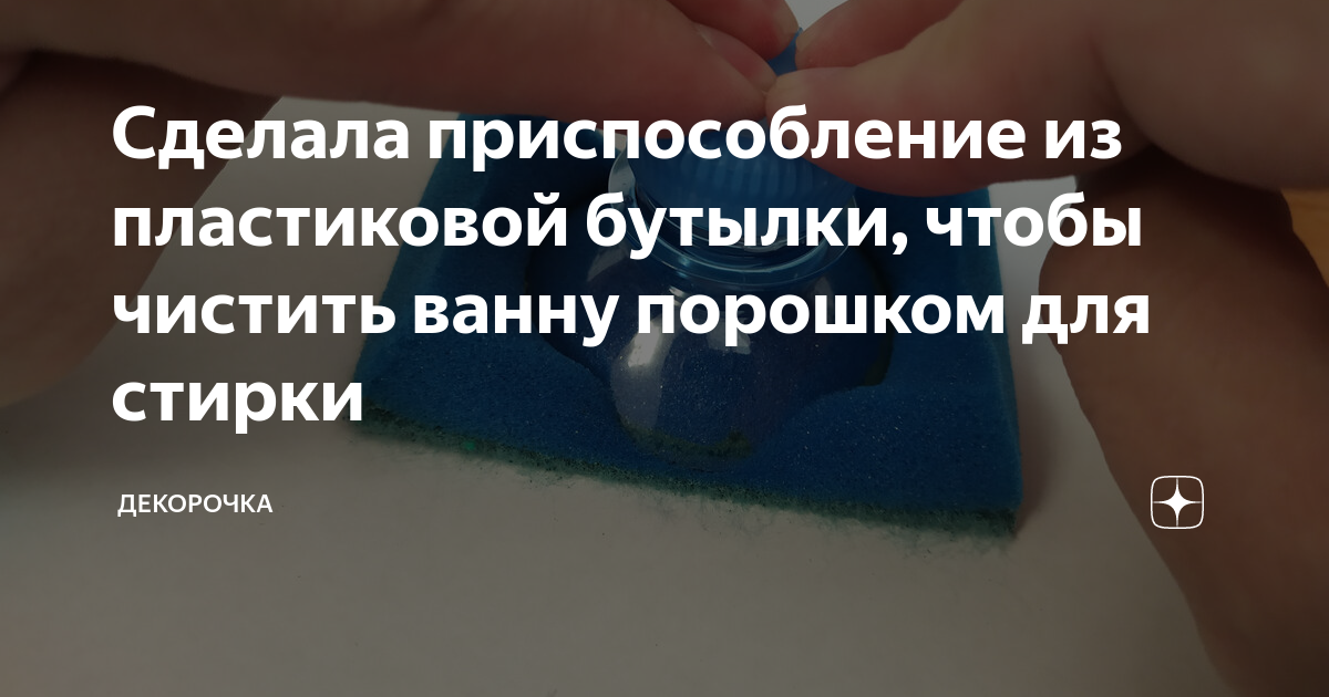 Сделала приспособление из пластиковой бутылки, чтобы чистить ванну порошком для стирки Два года назад делали ремонт в ванной. Заменили чугунную ванну на акриловую. Она намного легче (около 30 кг.), легко монтировать. Вода в ней остывает медленней и стенки ванны не такие холодные как у ванн из металла.