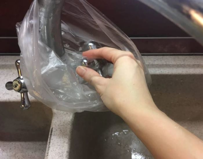 Зачем нужно надевать пакет на кран на кухне: трюк от опытных хозяек